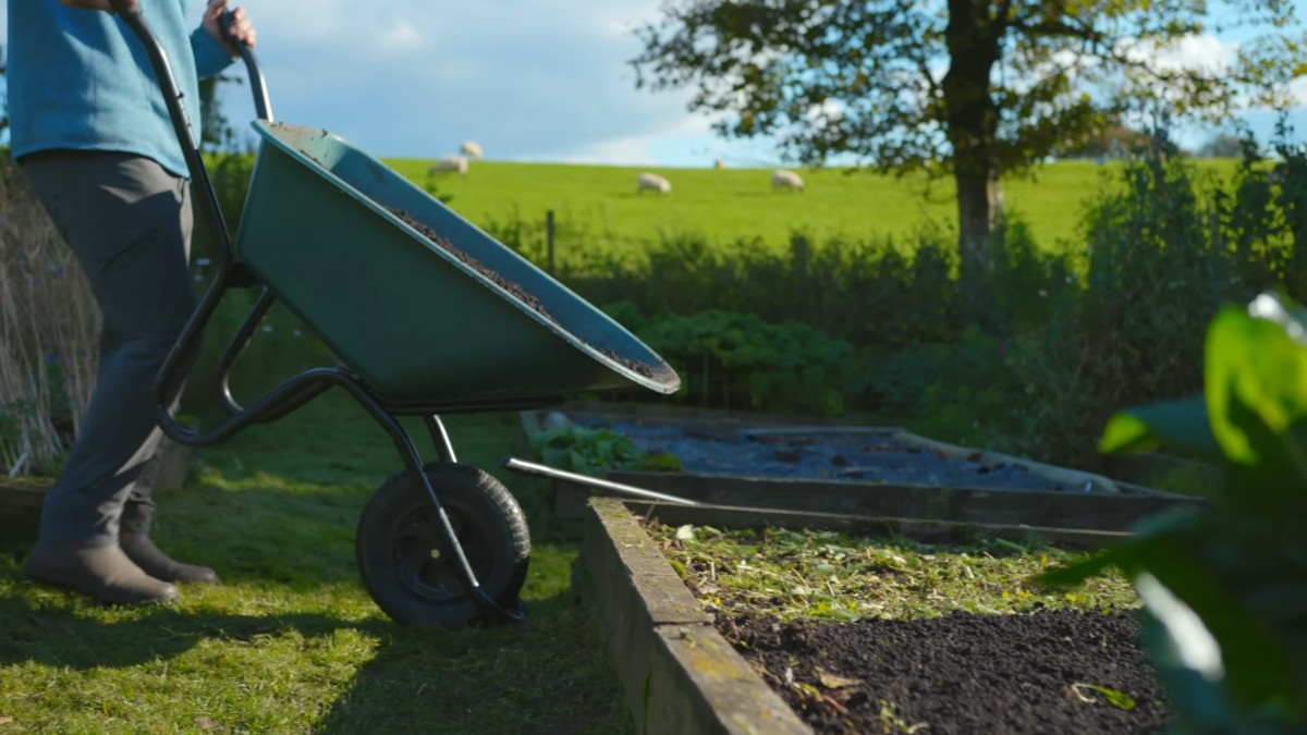 Na záhon se opět přiváží kompost jako vrchní vrstva bez rytí. Postupné doplňování udržuje půdu živou a úrodnou