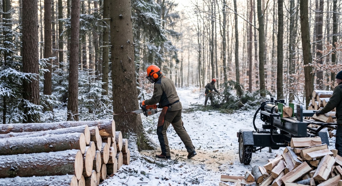 Stromy se kácejí od listopadu do března. Nejen kvůli absenci mízy, ale i proto, že zmrzlé dřevo se mnohem lépe štípe