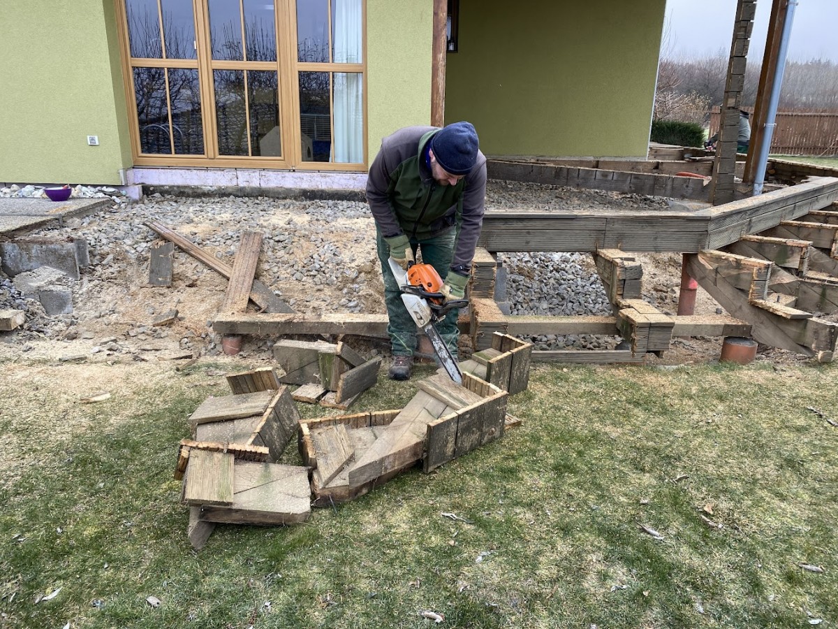 Než se mohlo začít se stavbou nové terasy, musela se nejdříve zlikvidovat ta stará