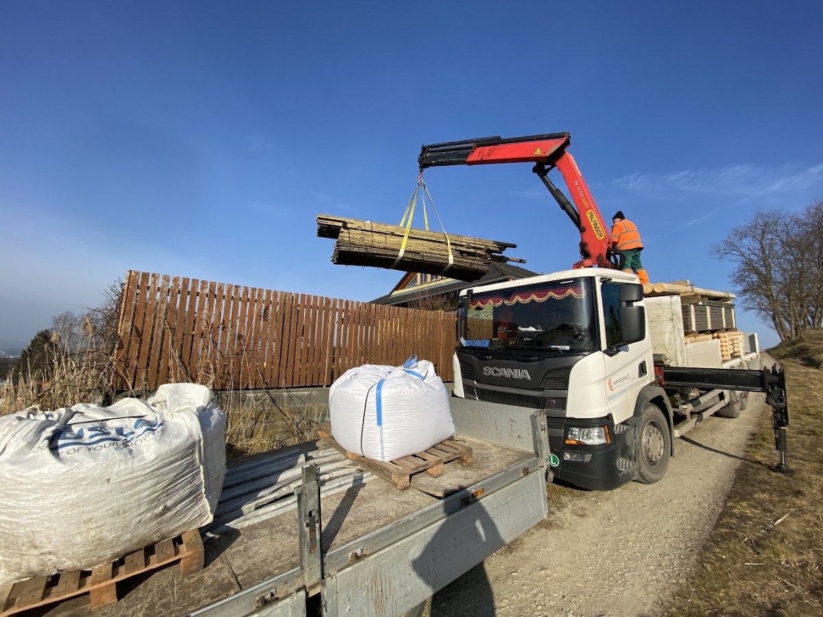 Impregnované dřevo bylo dovezeno k Ivině domu