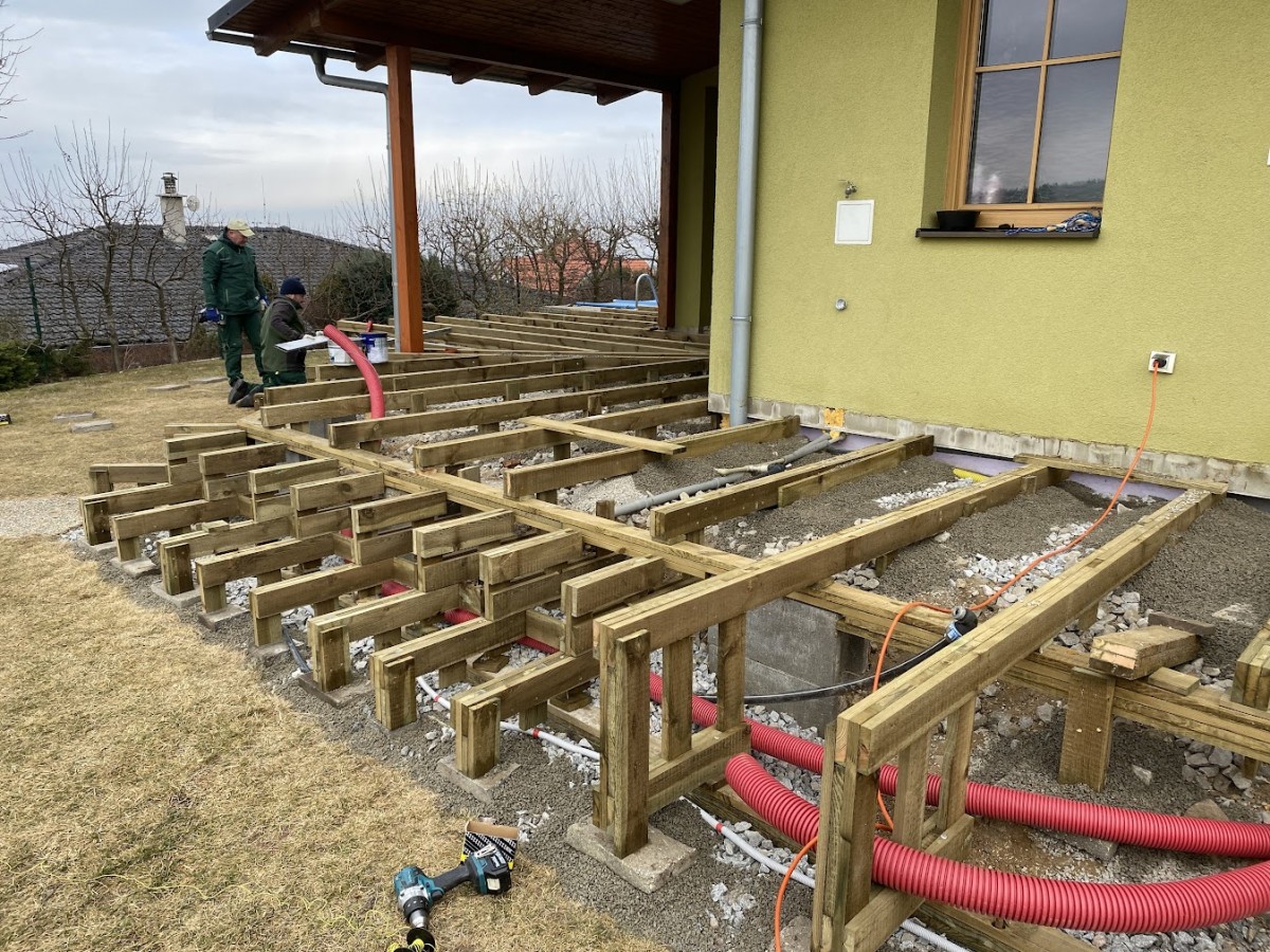 Stavba terasy z impregnovaného dřeva zabrala cca 14 dní