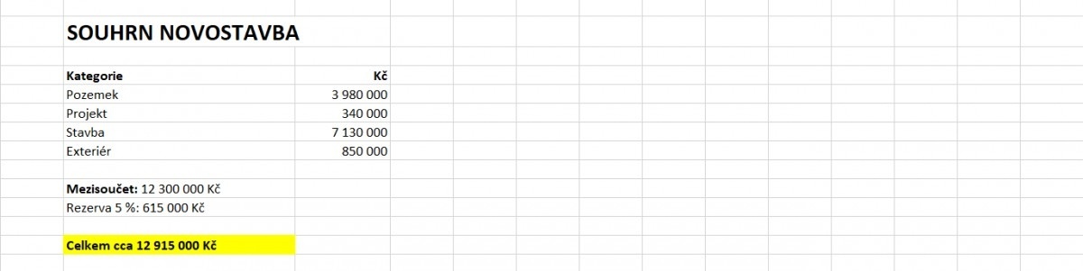 Z tabulky, kde manželé porovnávali rozpočet na novostavbu a rekonstrukci, je zjevné, že novostavba by byla o přibližně 1,7 mil. dražší