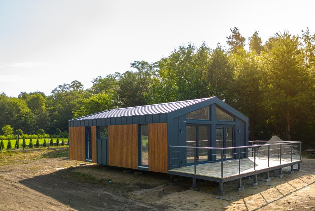 Tyto domy vznikají z předem vyrobených stavebních modulů, které se vyrábějí ve výrobní hale a na pozemek se následně dopravují téměř hotové