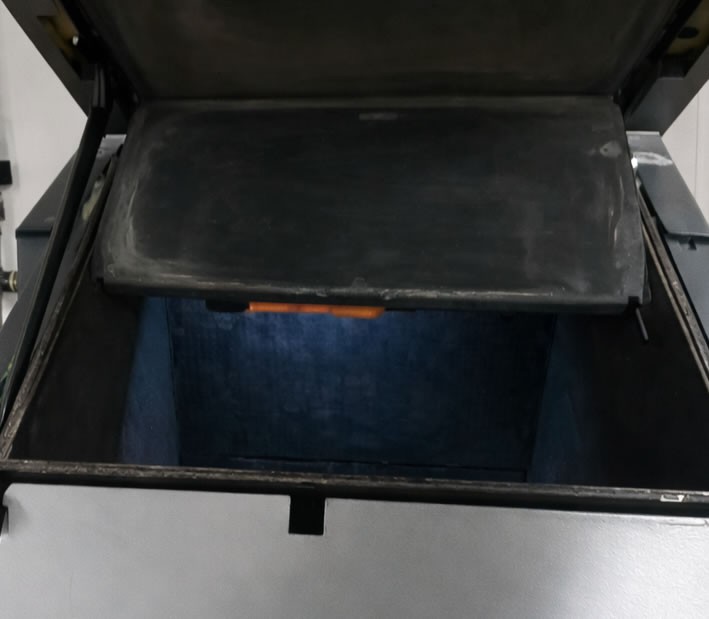 Pohled do otevřeného kotle na dřevo, ve kterém je dnes stále povoleno topit