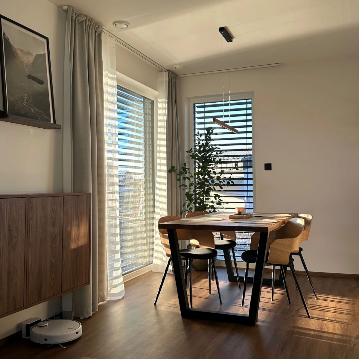 V rámci individuálních úprav zvětšili jídelní kout o jeden metr (posunutím obvodové zdi, čímž se změnil vnější rozměr domu)