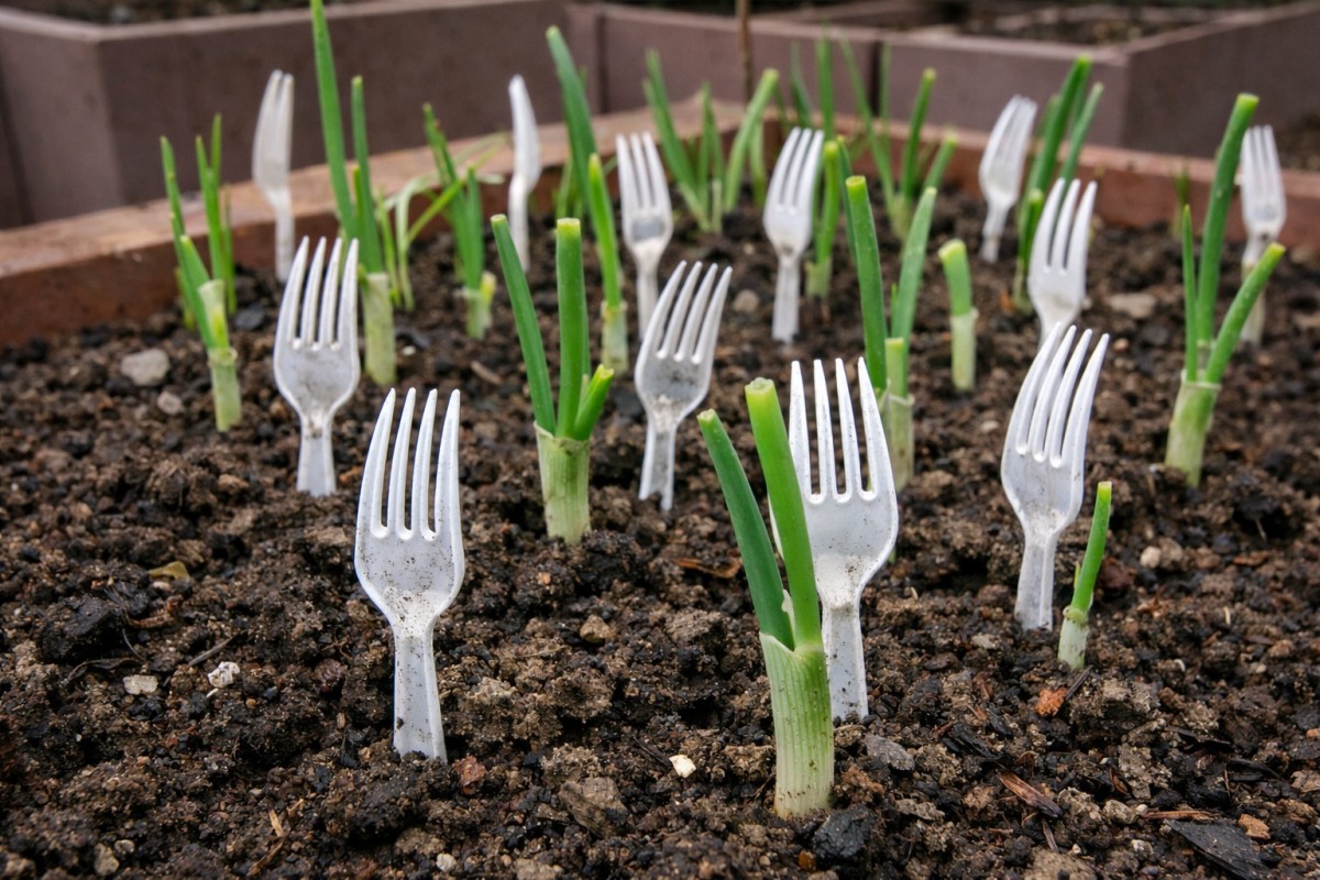 Vidličky zapíchané mezi mladé rostliny vytvoří jednoduchou ochrannou zónu. Zvířata tak ztrácejí chuť v záhonu hrabat a často se raději přesunou jinam