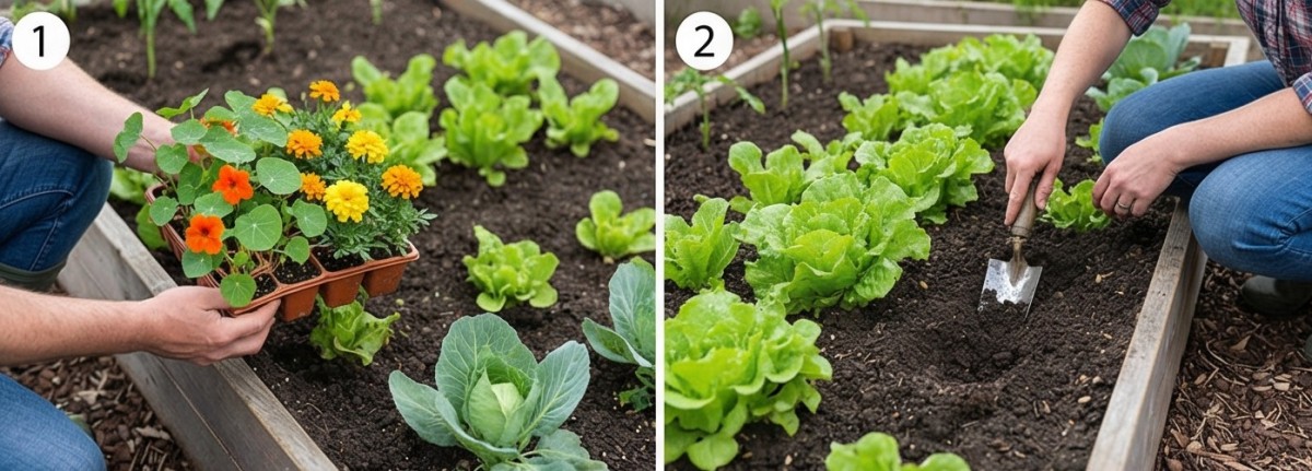 Připravte si sazenice návnadových rostlin, například lichořeřišnici nebo aksamitník. Vyberte vhodné místo mezi hlavními plodinami, ideálně na okraj záhonu