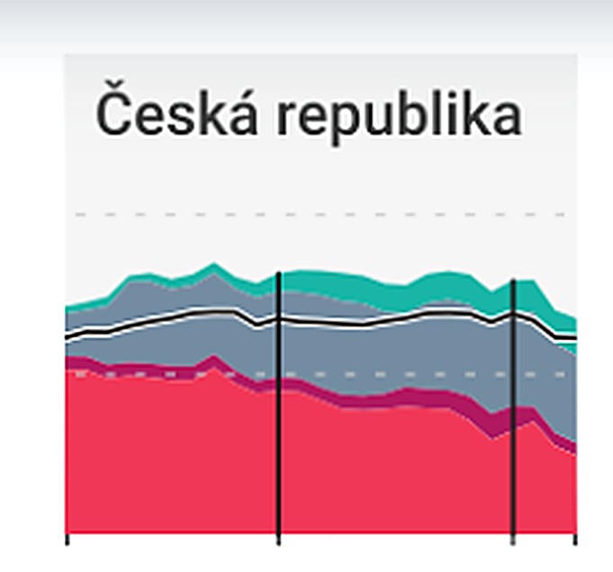 Česko dlouhodobě spoléhá hlavně na uhlí a jádro, podíl obnovitelných zdrojů roste jen pozvolna. Na konci období výroba mírně převyšuje spotřebu