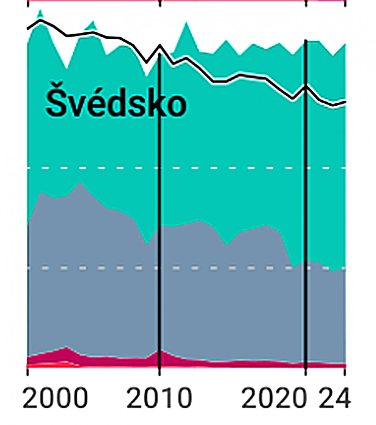 Švédsko dlouhodobě vyrábí hlavně z jádra a obnovitelných zdrojů, fosilní paliva mají jen malý podíl. Na konci období výroba převyšuje spotřebu