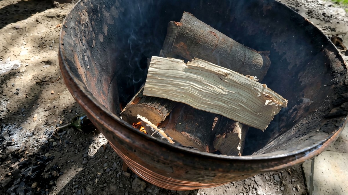 Do sudu přikládejte suché dřevo a udržujte stabilní oheň. Silný plamen zahřívá kov i měděnou spirálu a tím rychle zvyšuje teplotu vody