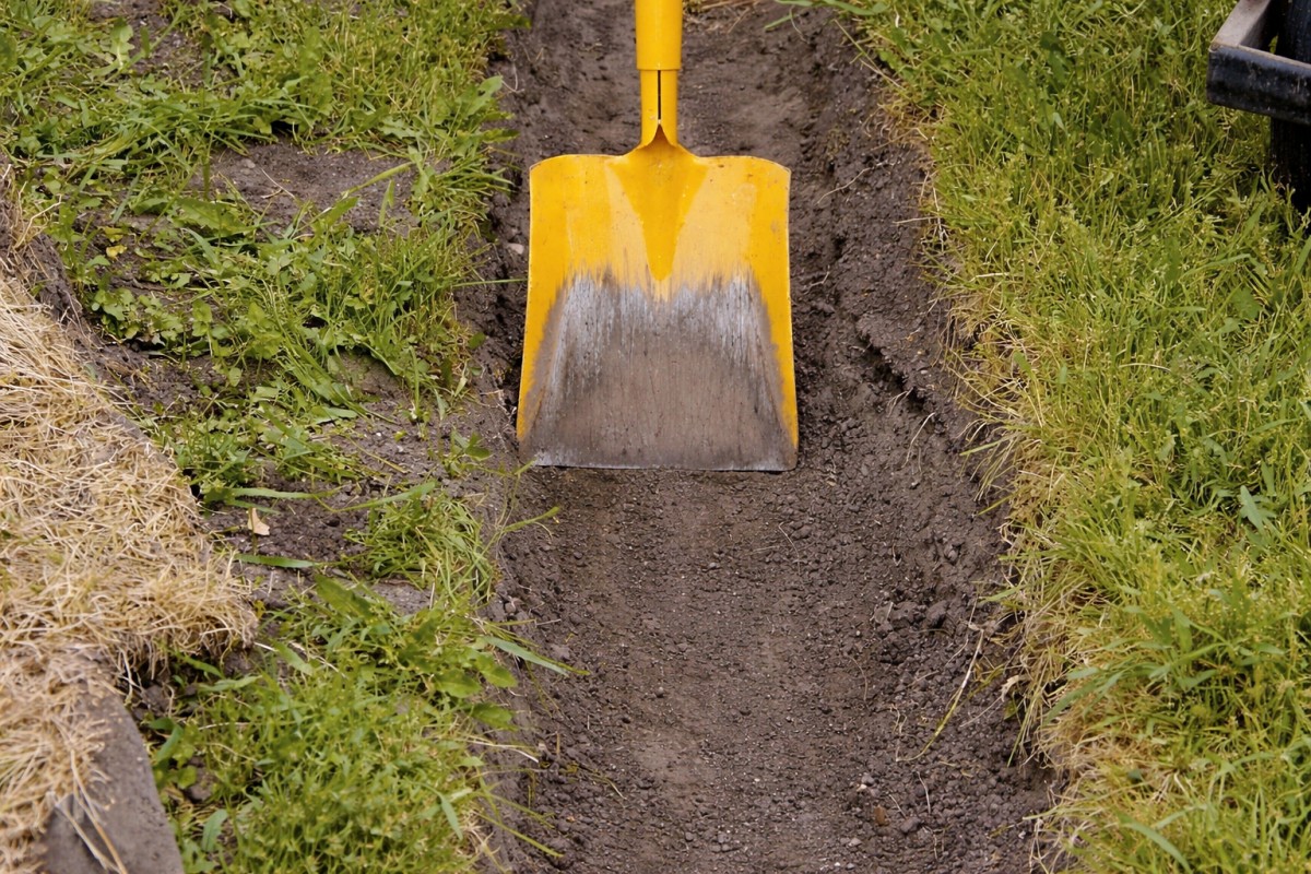 Vykopejte rovnou rýhu až do pevnější vrstvy půdy, protože stabilní a neporušený podklad je zásadní pro to, aby se opěrná zeď časem neposouvala ani nesesouvala