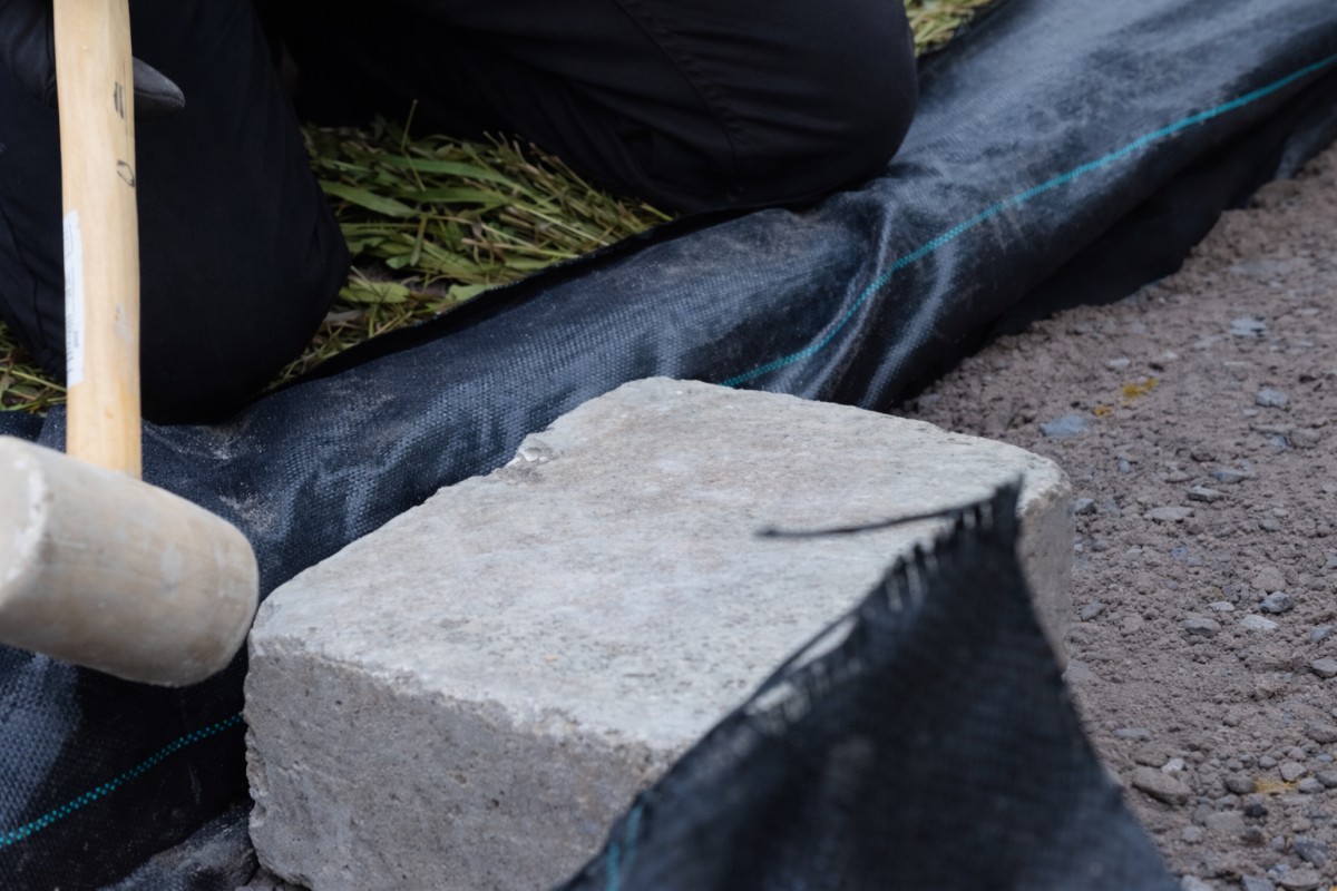 Na připravený podklad usaďte první kámen a jemně jej dorovnejte gumovou palicí, protože první řada musí být dokonale stabilní a rovná
