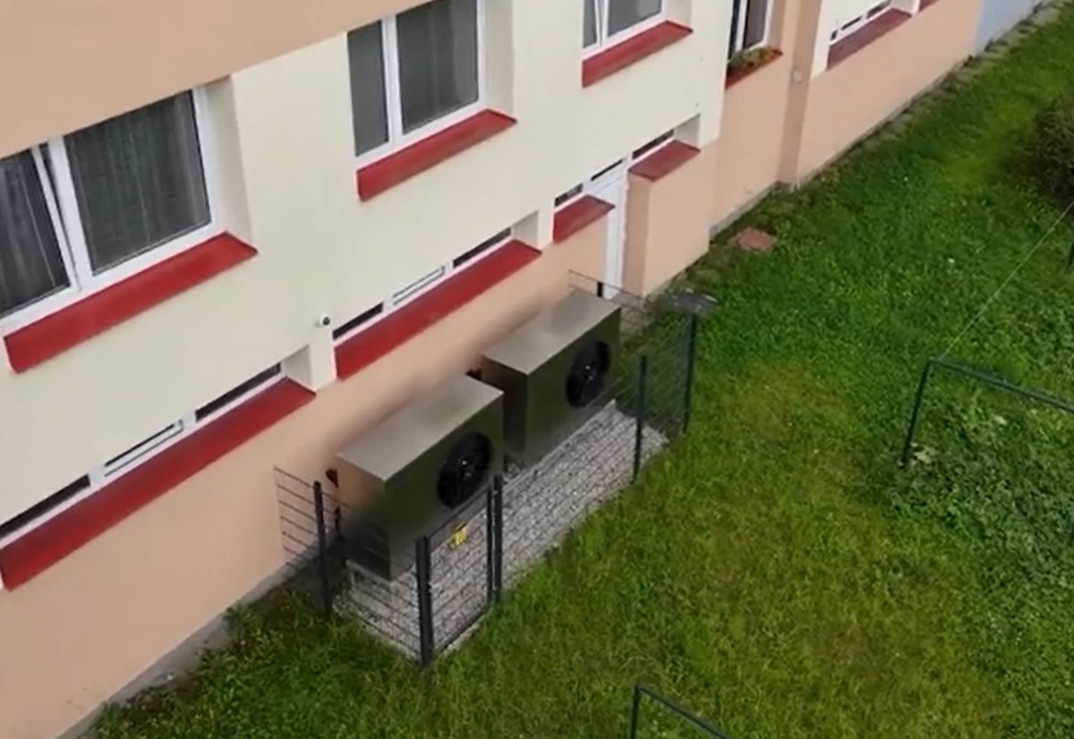 Dvě jednotky vytápění jsou umístěny přímo před panelovým domem
