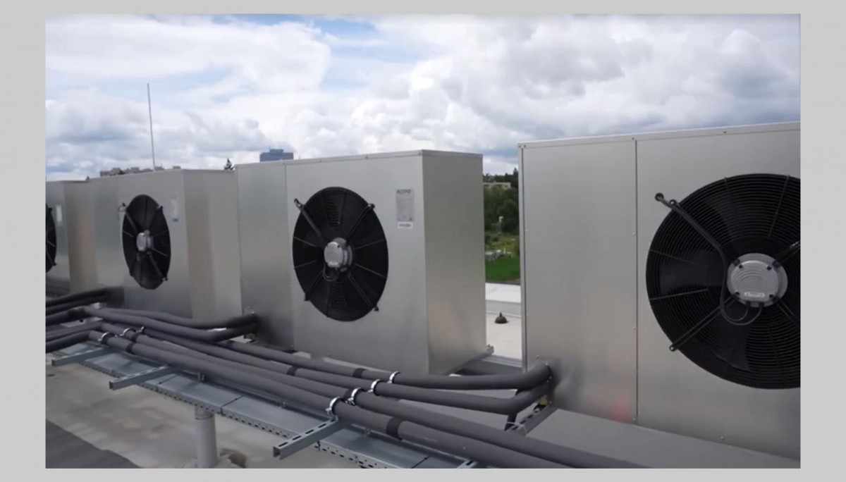 Tepelná čerpadla umístěna na střeše panelového domu, kde nikoho neruší