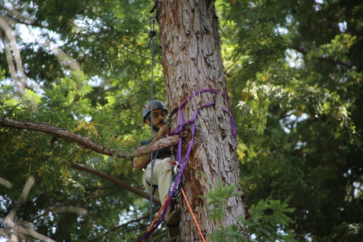Tichý okamžik vysoko v korunách stromů člověk pečlivě upevňuje lana která budou držet další část lesní stavby a příroda kolem něj sleduje jak se rodí projekt který s ní počítá od samého začátku