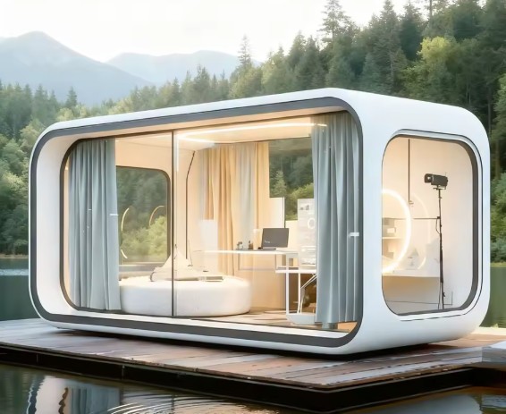 Tyto domky mohou sloužit také jako nejrůznější kanceláře. Například tento za 37 787 Kč