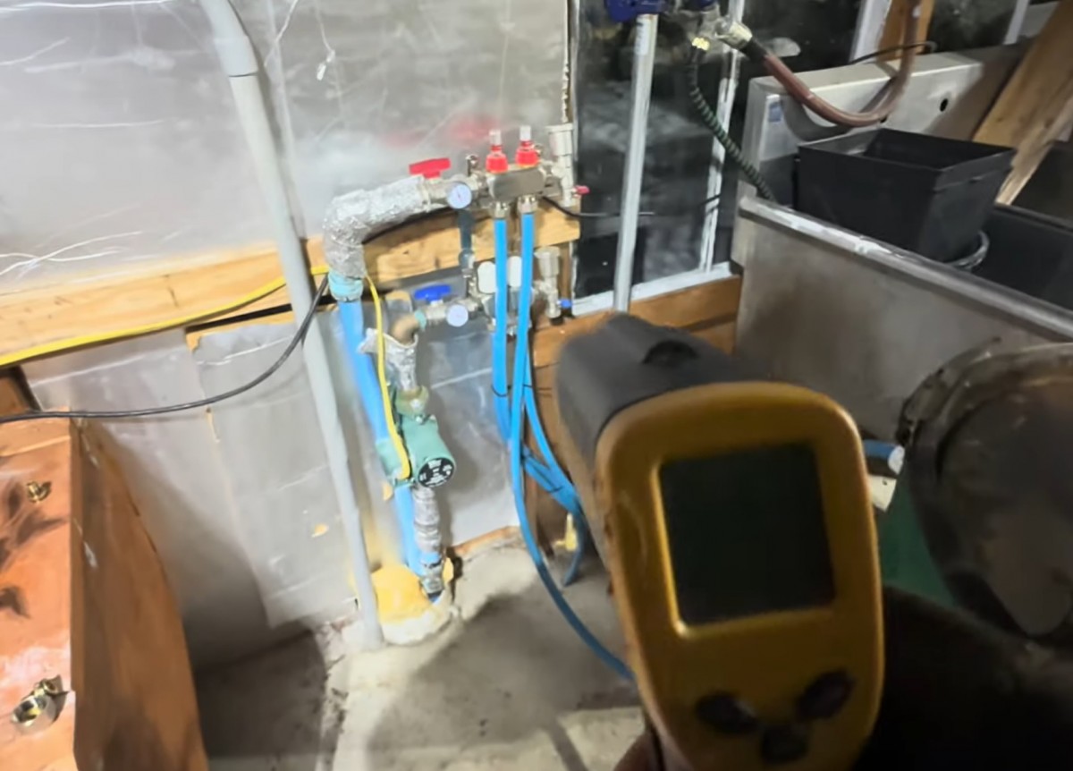 Do skleníku natéká voda z pískové baterie a vytápí skleník v mrazech i když se zrovna netopí