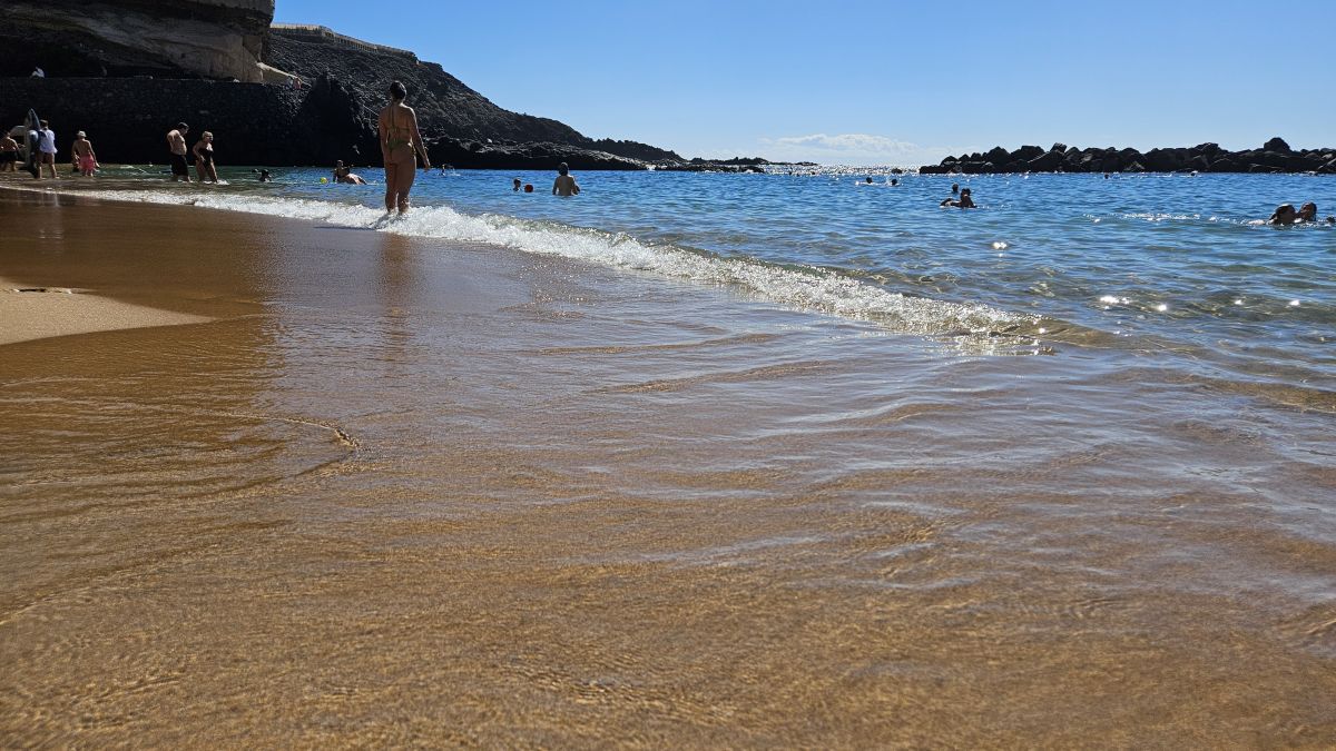 Zatímco teploměr ve stínu a předpověď počasí říká, že teplota je kolem 25 stupňů, realita na slunci je úplně jiná a pocitová teplota přesahuje krásných 30. Stejně tak teplota vody je překvapující. Přestože se jedná o vodu oceánskou, která bývá obecně chladnější, v tyto dny je příjemně teplá. Důvodem není jen to, že je ideální období po létě, ale také to, že pláž je velmi chytře oddělena od zbytku oceánu pomocí kamenné hráze a utváří tak jakýsi luxusní přírodní bazén.