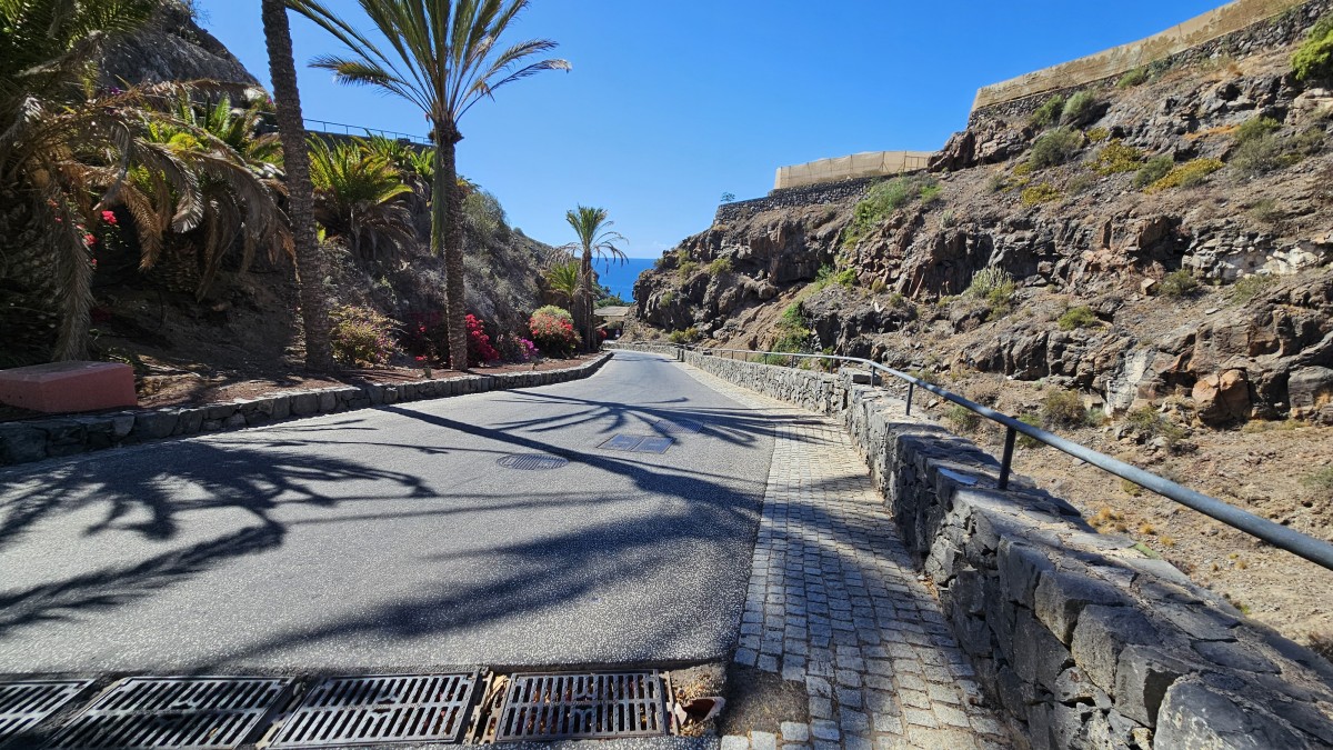 Přístupová cesta k pláži vede po silnici ale i po schodech