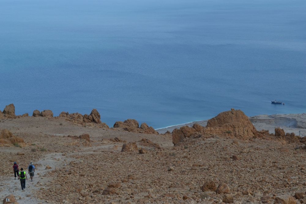 Pohled na mrtvé moře z místních hor. Západní pobřeží