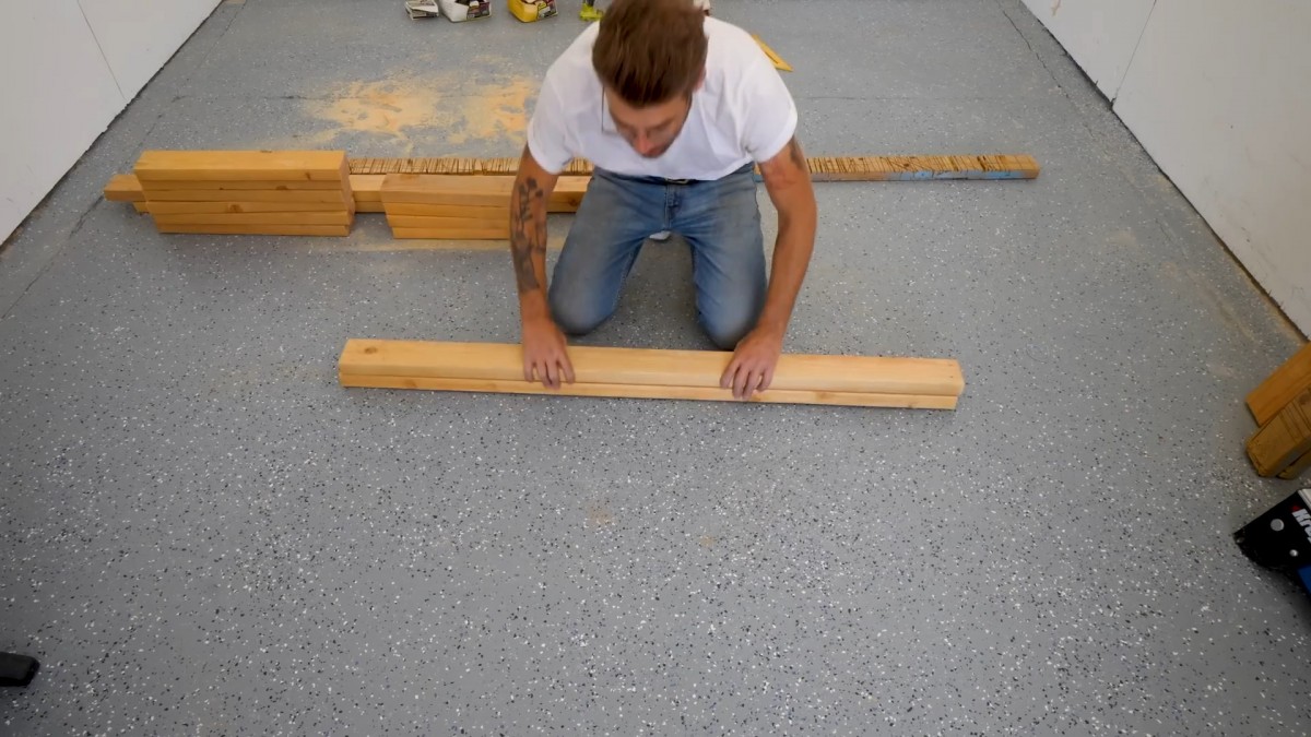 Připravené díly jsou nachystané k prvnímu sestavení obdélníkového rámu
