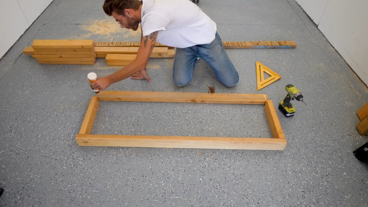 Lepidlo na dřevo a vruty spojují první rám, který tvoří základ celého stolu