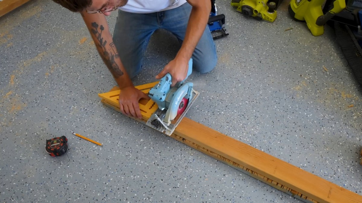 Řezání posledních hranolů doplňuje konstrukci, která bude tvořit základ budoucího stolu