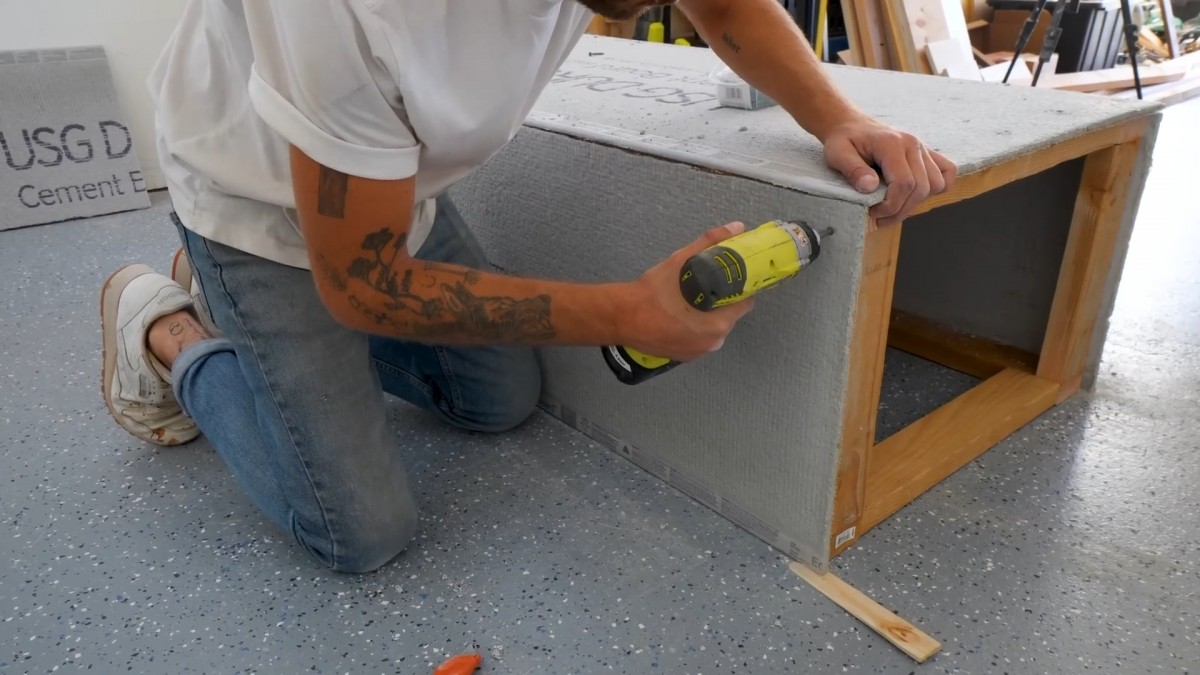 Přichycení boční desky vytváří čisté a rovné stěny budoucího stolu