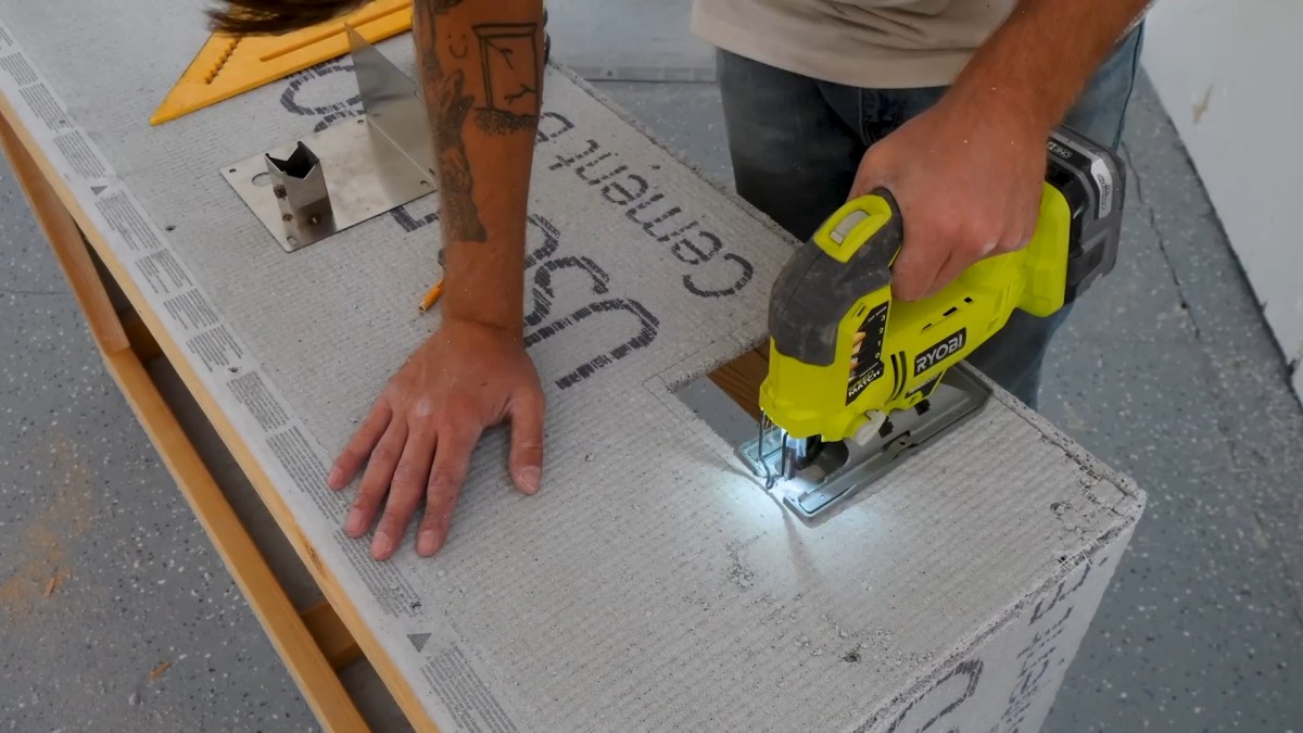 Vyřezávání otvoru přímočarou pilou vytváří prostor pro budoucí ohniště