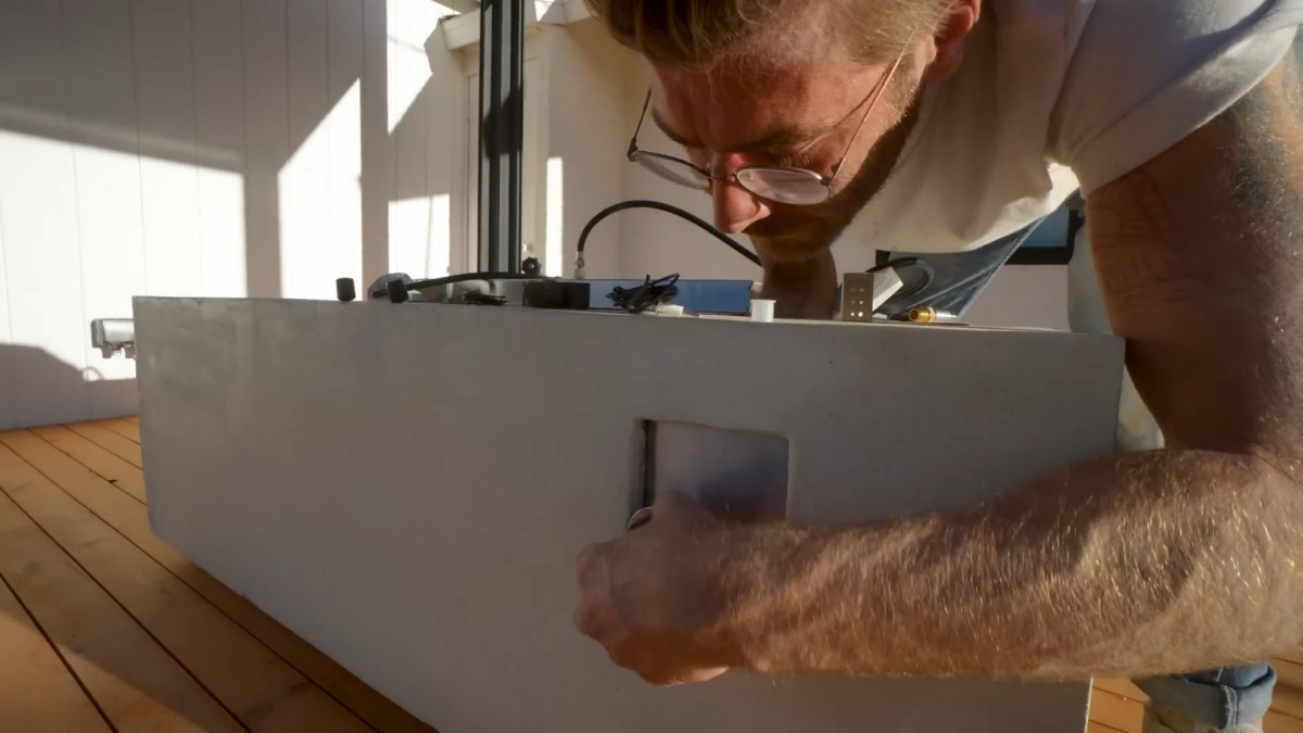 Montáž ovládacího panelu na bok stolu, odkud se bude regulovat plamen i zapalování ohniště