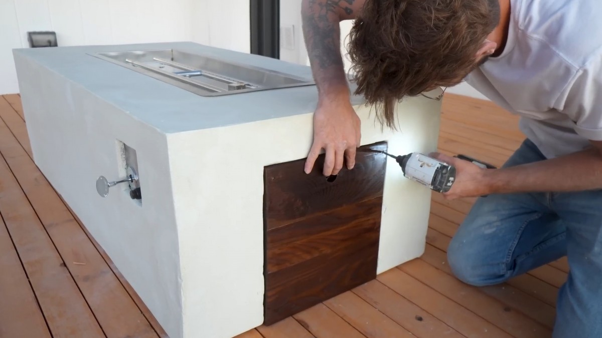 Nasazení dřevěných dvířek, která zakryjí prostor s lahví