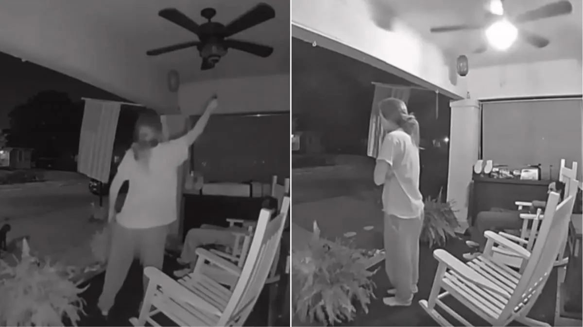 Spokojeného muže sedícího v houpacím křesle si zpočátku nevšimla ani žena, ani její pes. Oba přitom prošli kolem a majitelka domu dokonce rozsvítila světlo.