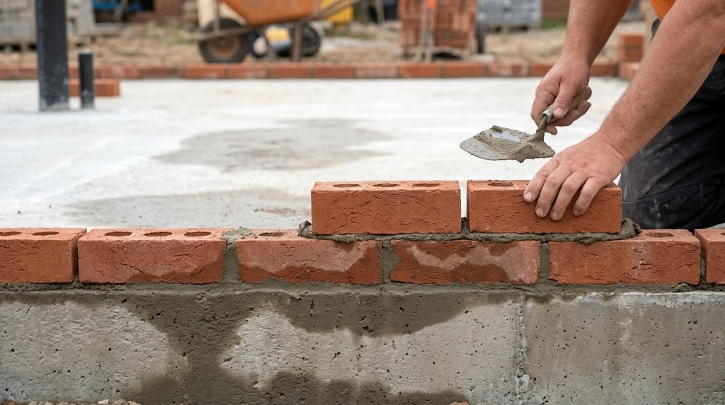 Mezi základ a první šár (řadu) cihel nebo tvárnic musí přijít hydroizolační pás (např. IPA)