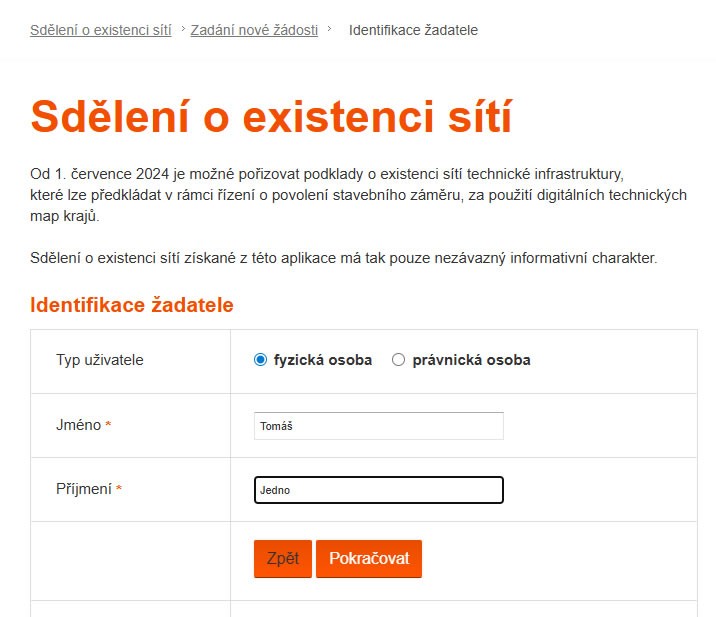 Ponecháme fyzická osoba a vyplníme své jméno a příjmení