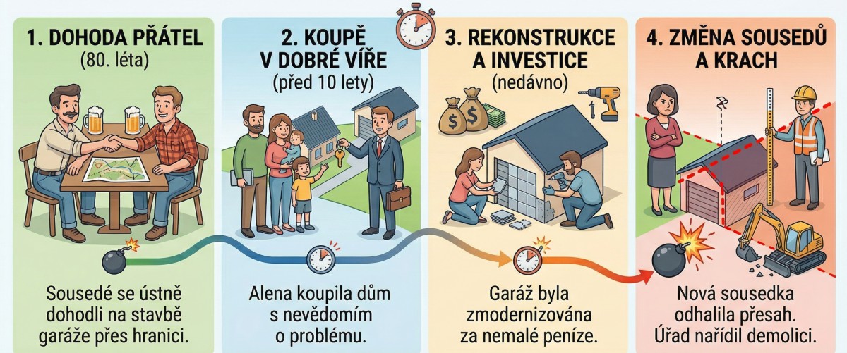 Typický příběh, který vede k sousedským sporům, které mohou znamenat až bourání staveb na pozemku