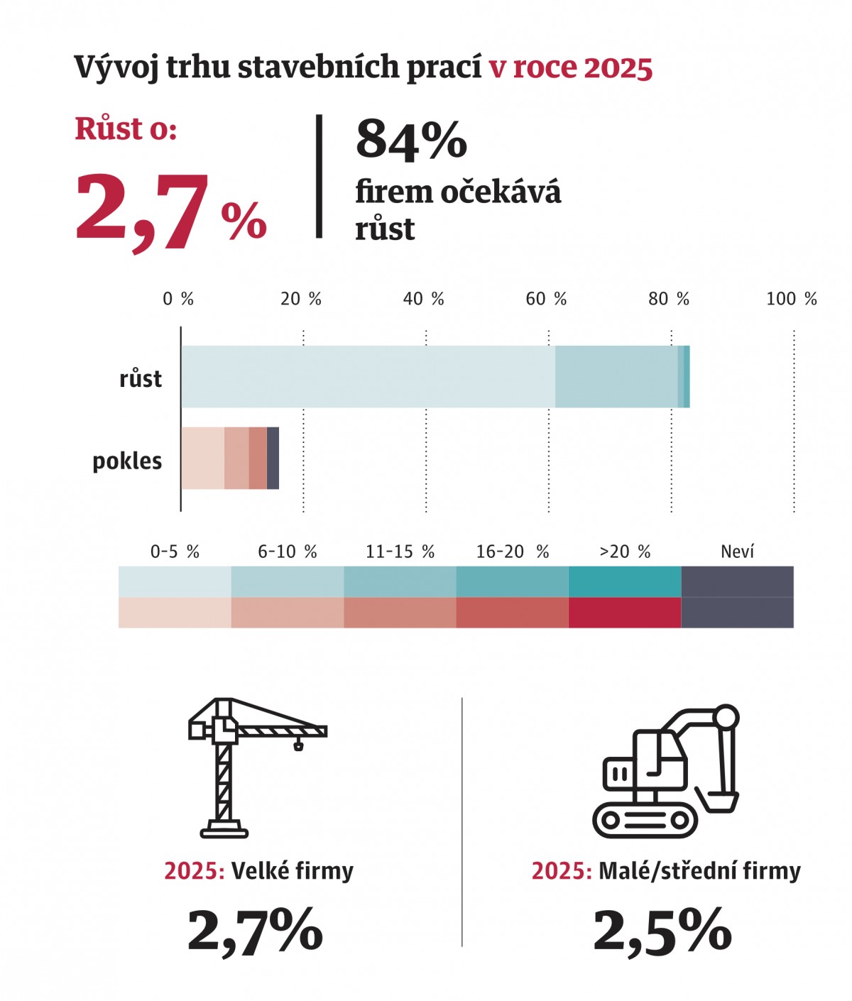 Stavebnictví v roce 2025 poroste o 2,7 %. Optimismus hlásí 84 % firem