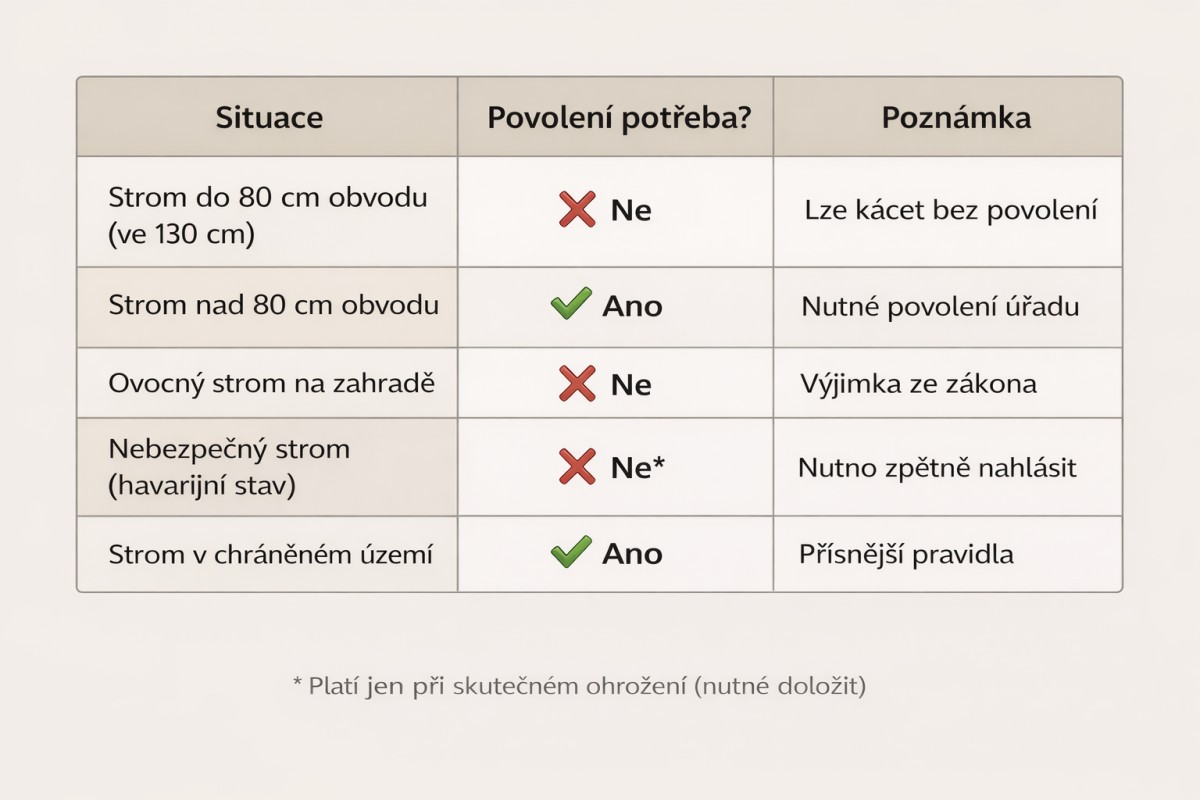 Přehledná tabulka ukazuje, kdy můžete strom na vlastní zahradě pokácet bez povolení