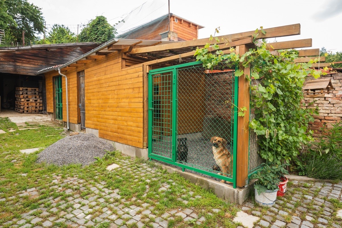 „Do dvora byl také zapracován kotec, ačkoliv jsou psi po povětšinu času doma a v noci střeží spánek v ložnici,“ říká Jiří