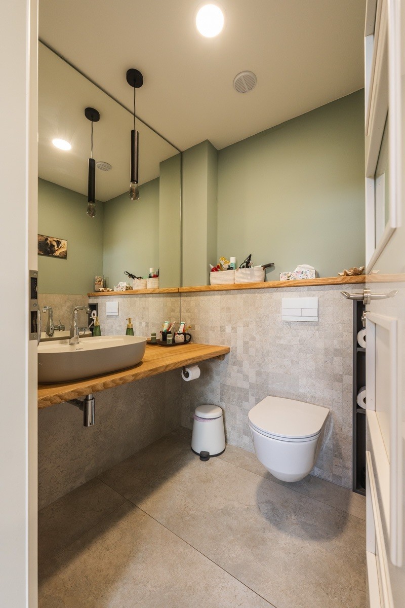 Hned z chodby vedou dveře na prostornou toaletu