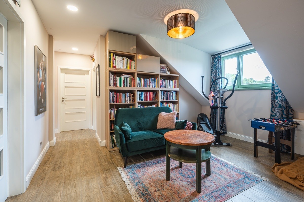 Uprostřed patra najdeme menší odpočinkovou zónu, kterou využívají především děti majitelů