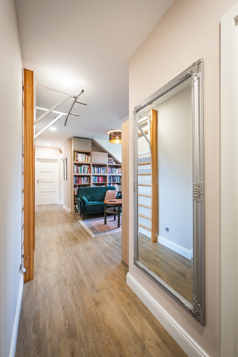 Děti mají v patře menší obývací pokoj, kde společně tráví čas
