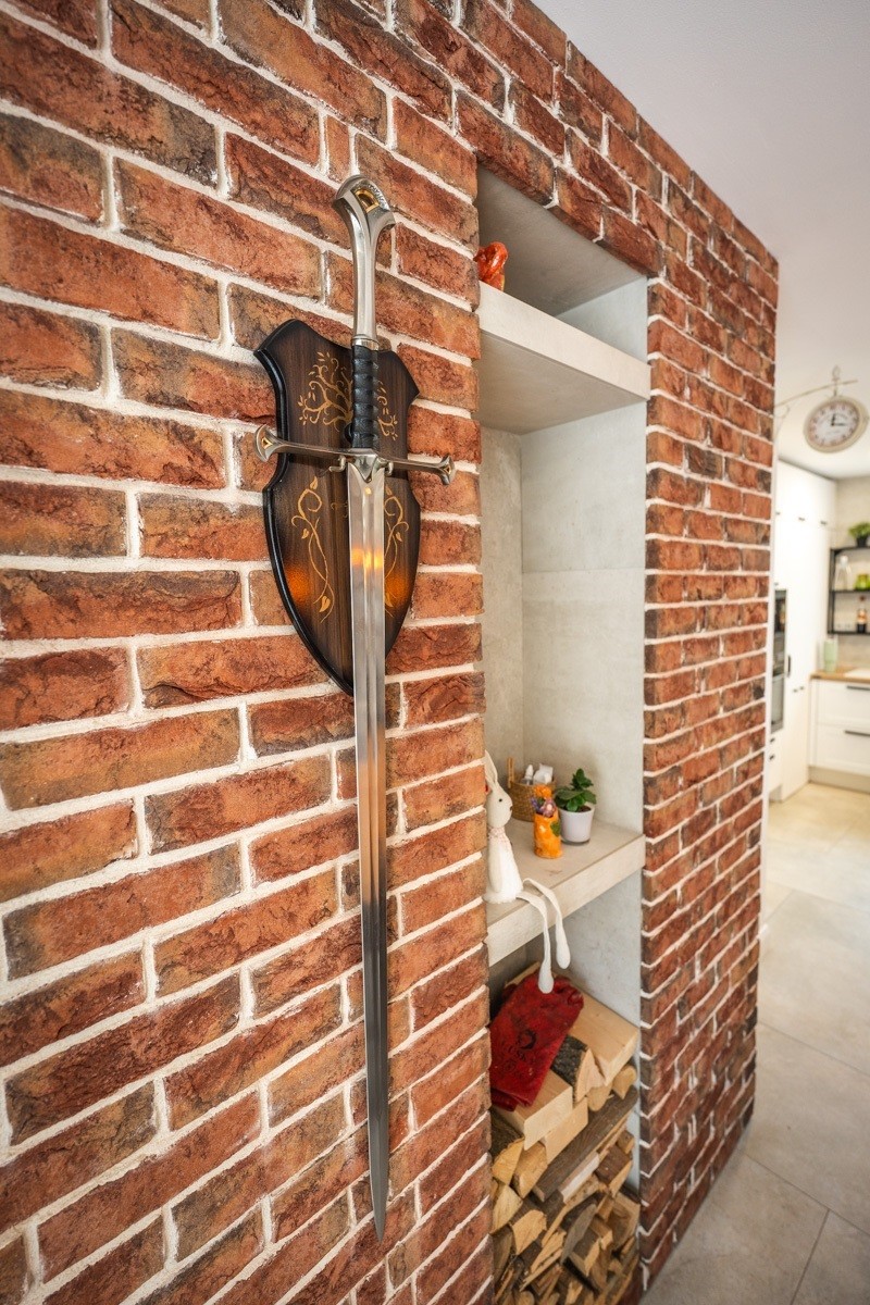 Majitelé domu jsou velkými fanoušky Pána prstenů. Na stěně v obýváku mají Aragornův meč Andúril