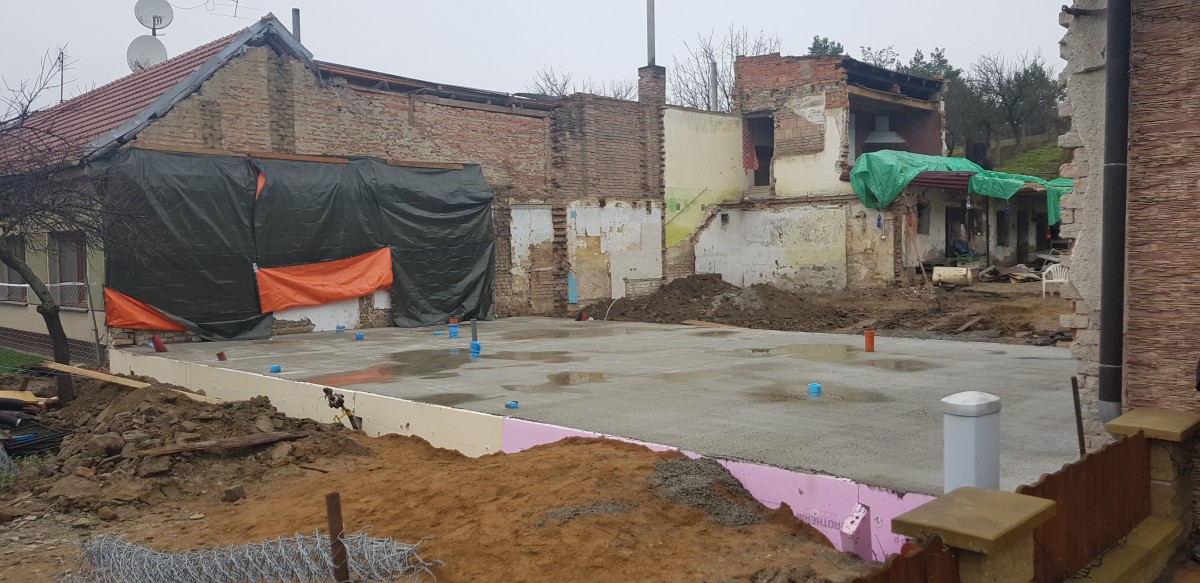 Na fotografii můžete vidět čerstvě vybetonovanou základovou desku