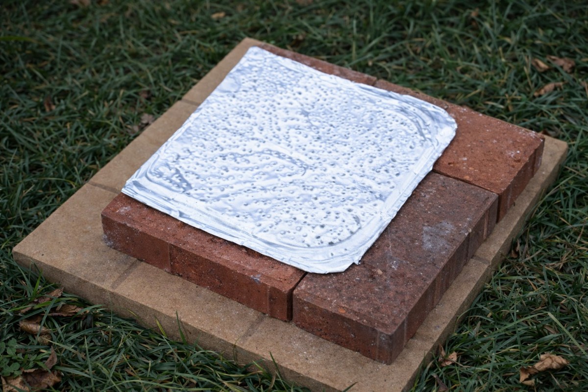 Nyní na cihly uložíme rošt. Může být hliníkový, ale lépe kovový plech, který má lepší životnost