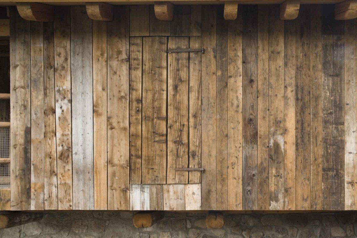Detail dřevěné fasády – bylo použité staré dřevo, které se zrenovovalo