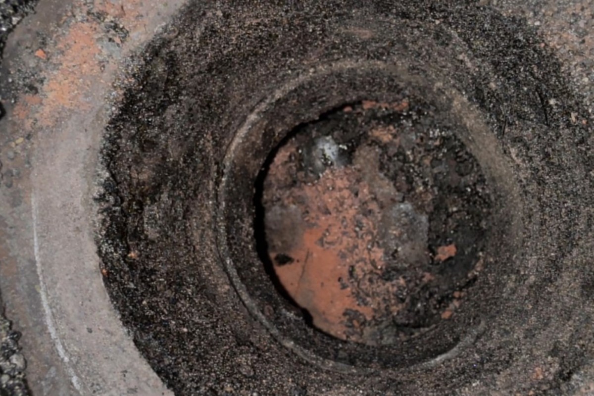 Ve spodní části kamen se nahromadily napečené usazeniny, které sem postupně padaly z komína při běžném provozu