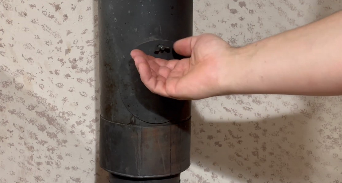 Lukáš otevřel revizní otvor v kouřovodu, aby mohl průběžně zkontrolovat množství usazenin
