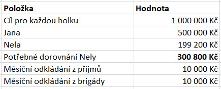 Pomoc dětem do života zní idylicky. Dokud nepřijde okamžik, kdy jedna dcera staví dům a druhá ještě žije ve studentském světě. „Chtěli jsme být spravedliví a každé dceři dát stejnou finanční pomoc, ale není to vůbec jednoduché,“ říká Eva, maminka starší Jany a mladší Nely. V rozhovoru popsala, jak se jim s manželem daří pomáhat oběma dcerám i s malým příjmem. Mimo jiné zveřejnila i excelovou tabulku, kde má ve financích přehled.