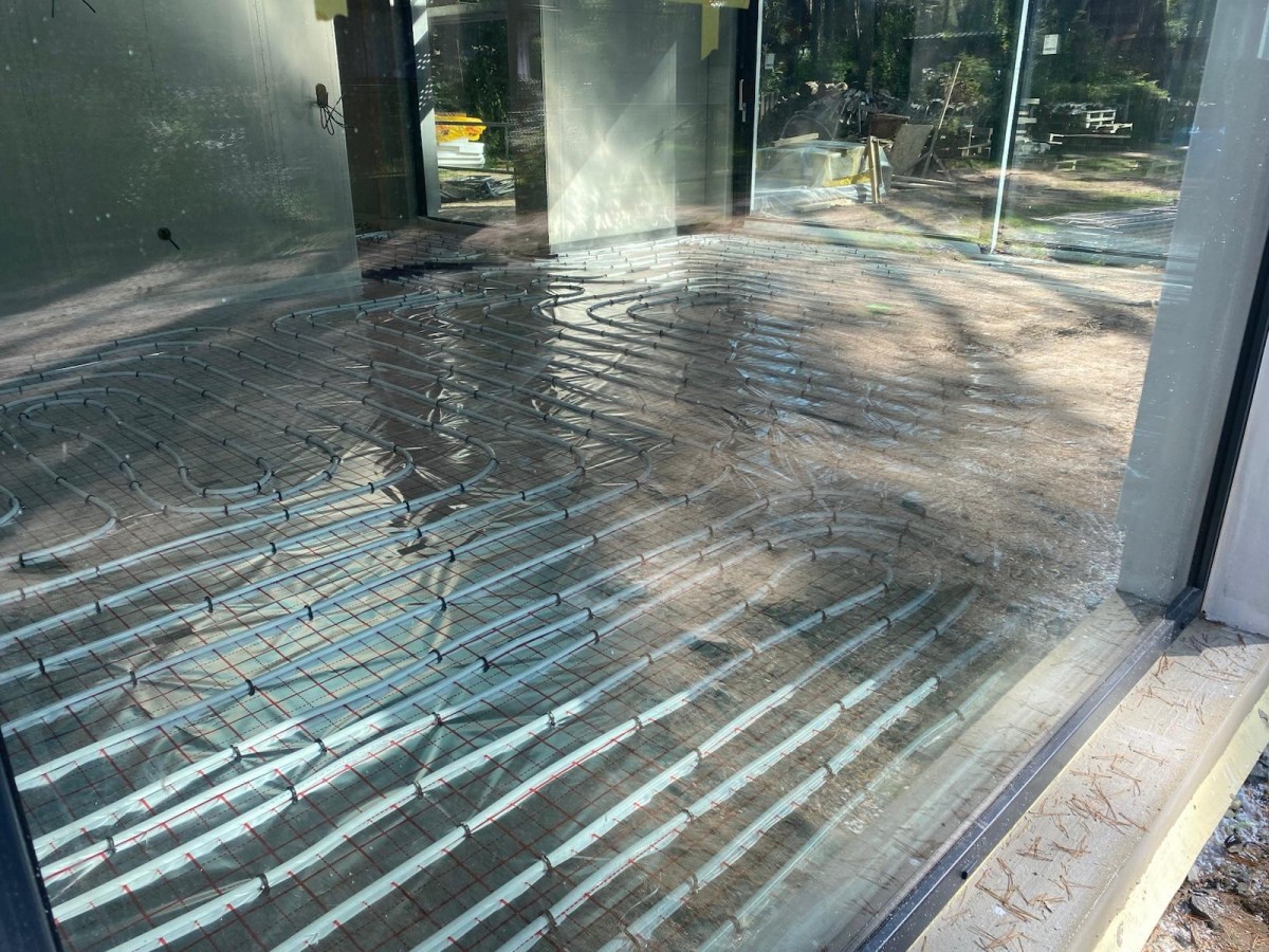 Dům vytápí tepelným čerpadlem vzduch-voda, teplovodní podlahové topení mají všude