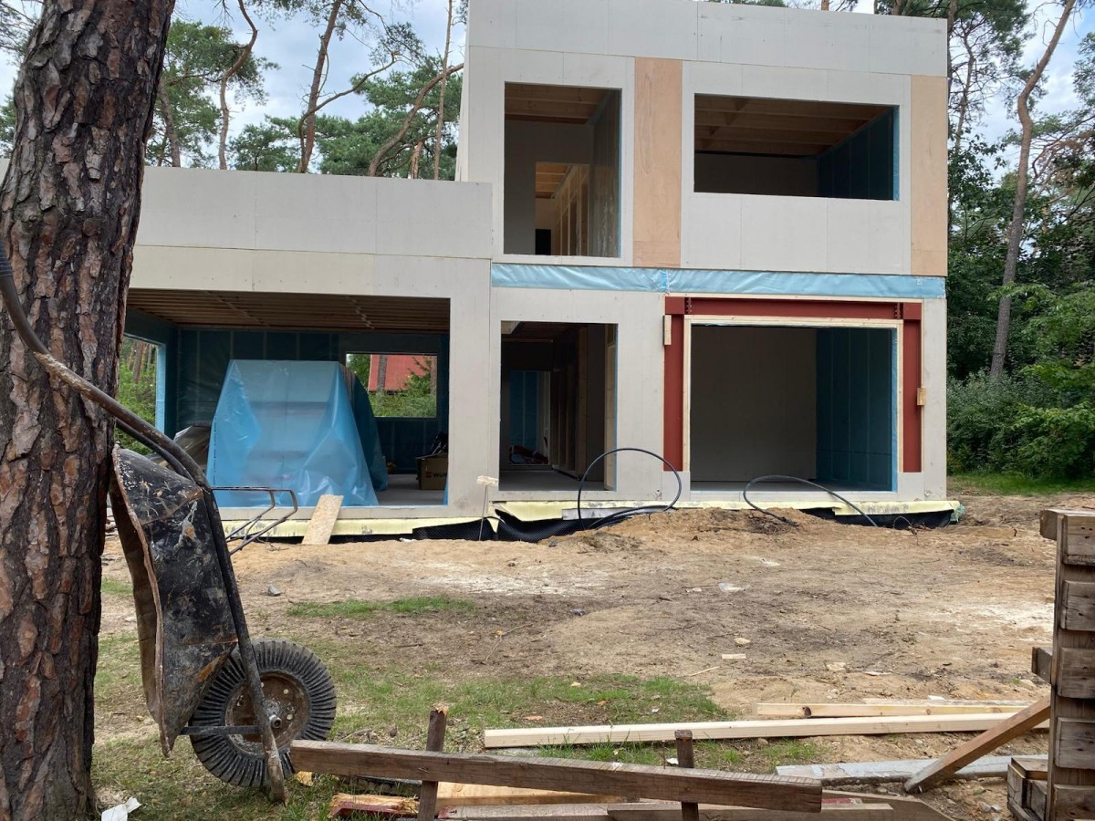 Před pěti lety koupili manželé 800 m2 velký pozemek s chátrající chatou. Důvodem nebyl původní objekt, ale samotná lokalita. Celoročně žijí v lese, daleko od rušných silnic a přitom kousek od Prahy. Manželé zvolili konstrukční systém ze dřeva, ačkoli jejich předchozí dva domy byly z pálené cihly a monolitického betonu. Díky bohatým zkušenostem s výstavbou už Martin, majitel domu, věděl, jak urychlit proces nejen na stavebním úřadě. Od podpisu smlouvy se stavební firmou do stěhování do nového domu uběhl necelý rok.